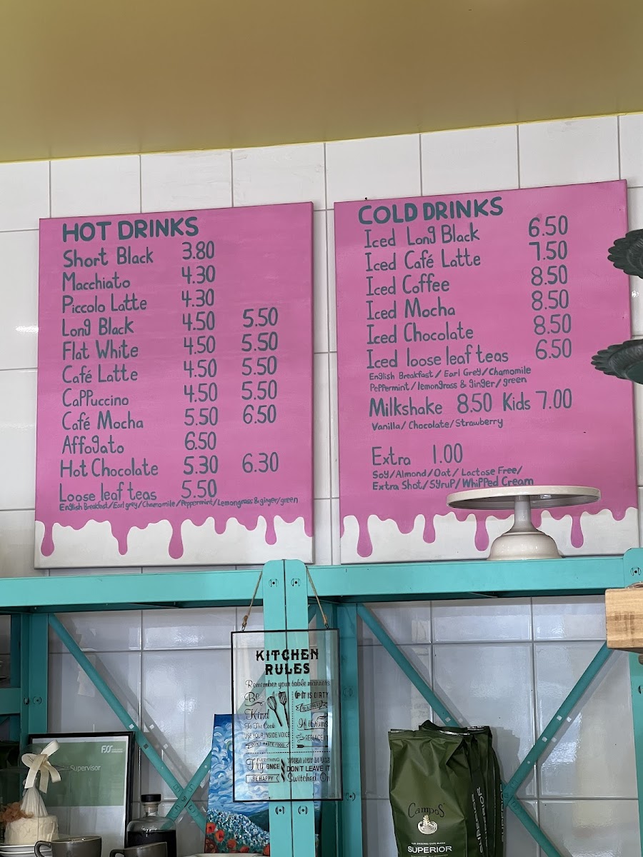 - Coffee and Beverages: A range of coffee options are available, including espresso-based drinks and matcha lattes, catering to typical café beverage preferences.